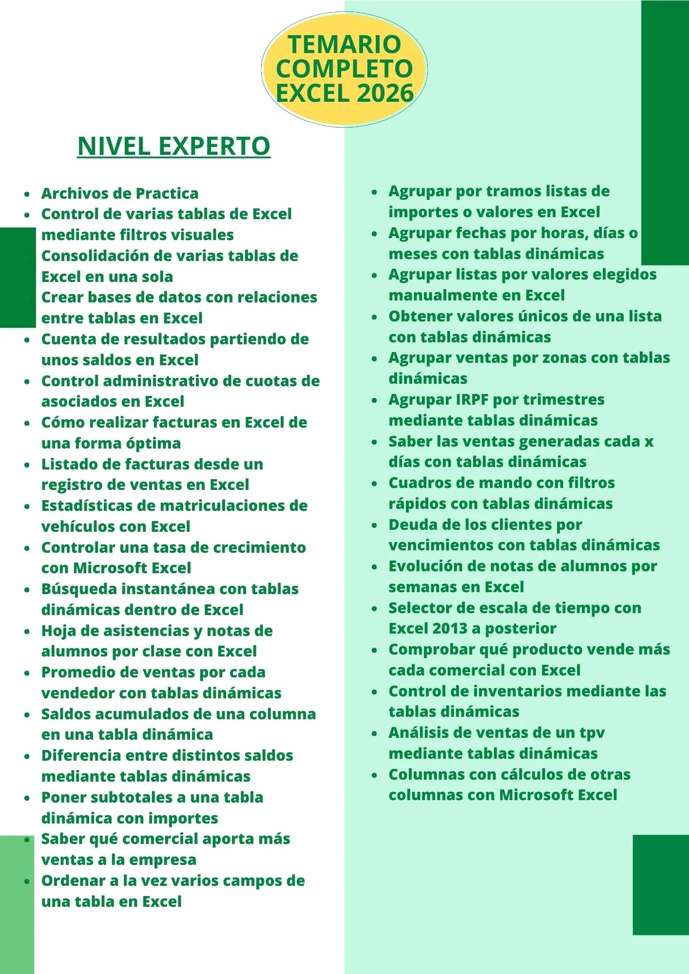 Un programa práctico donde aprendes a usar Excel de forma inteligente y automática, sin complicaciones y sin ser experto.