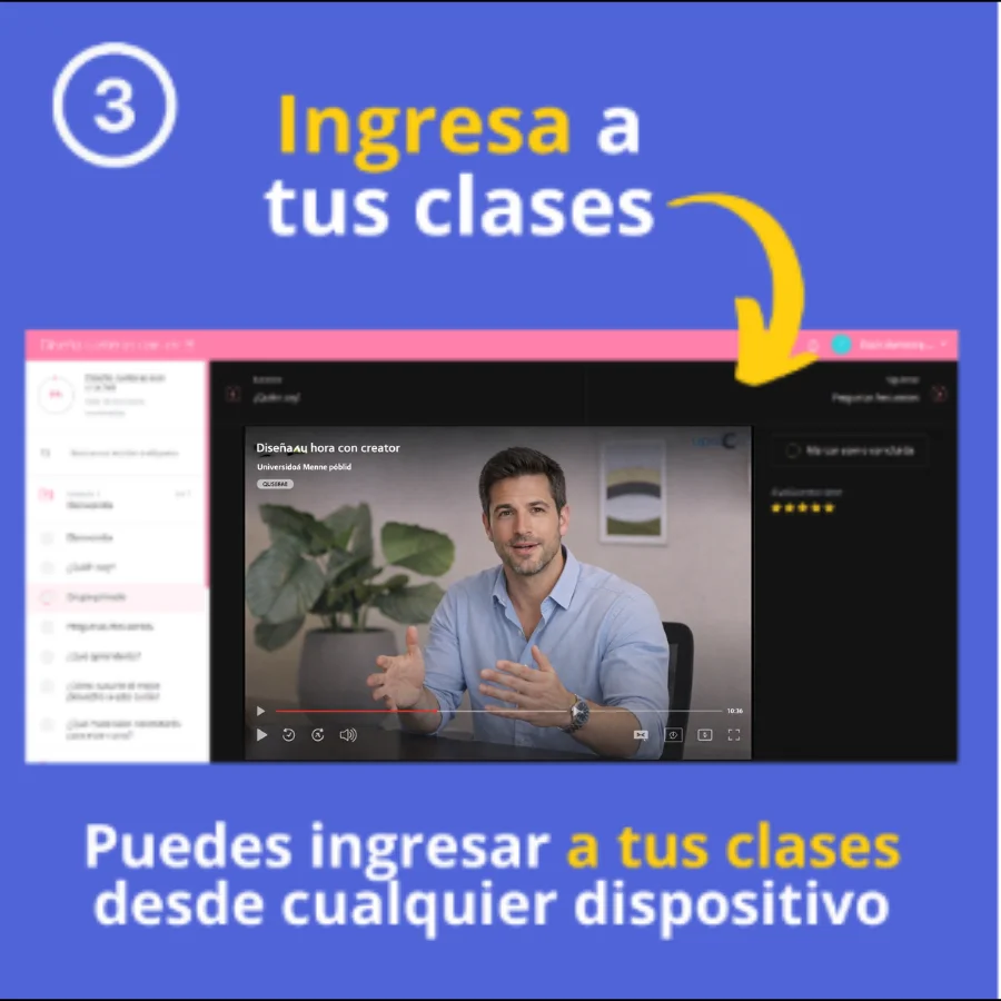 • El acceso es para toda la vida, puedes ingresar desde el lugar en el que te encuentres y a la hora que desees realizar la capacitación.